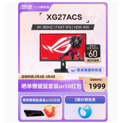 ROG XG27ACS绝杀27青春版 显示器电竞180Hz 27英寸2k显示屏幕电脑
